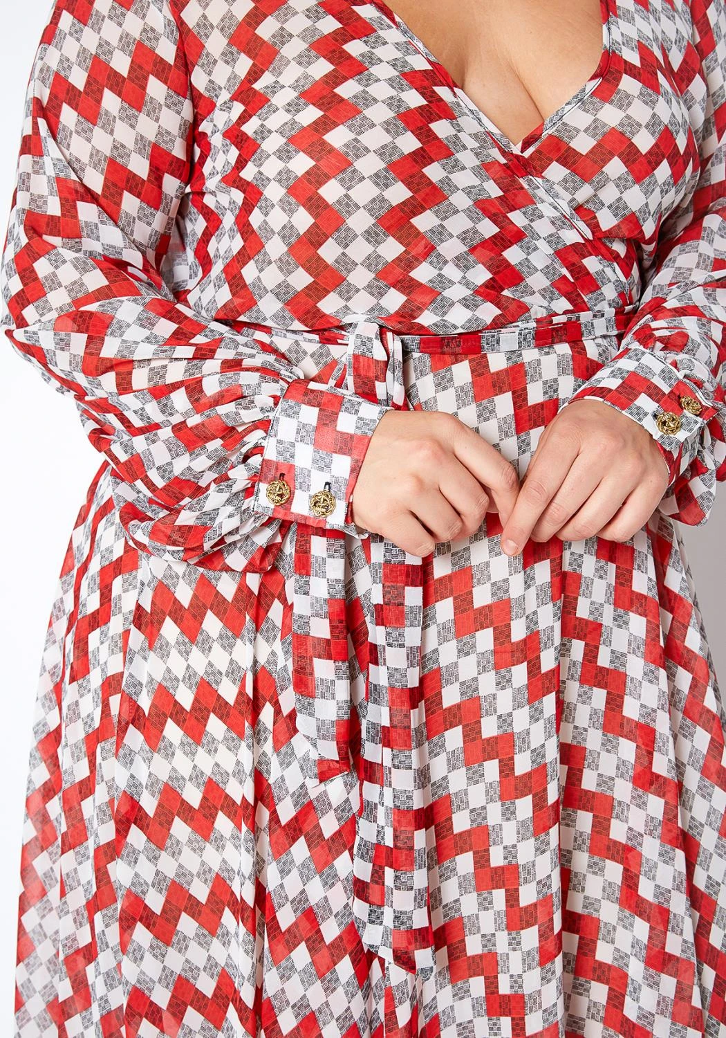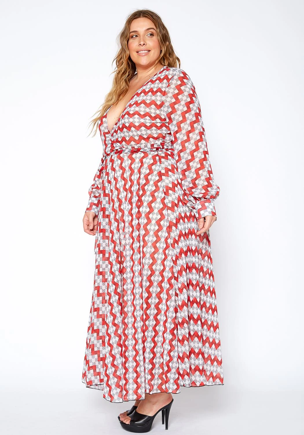 Plus size wrapped maxi dress with waist tie.