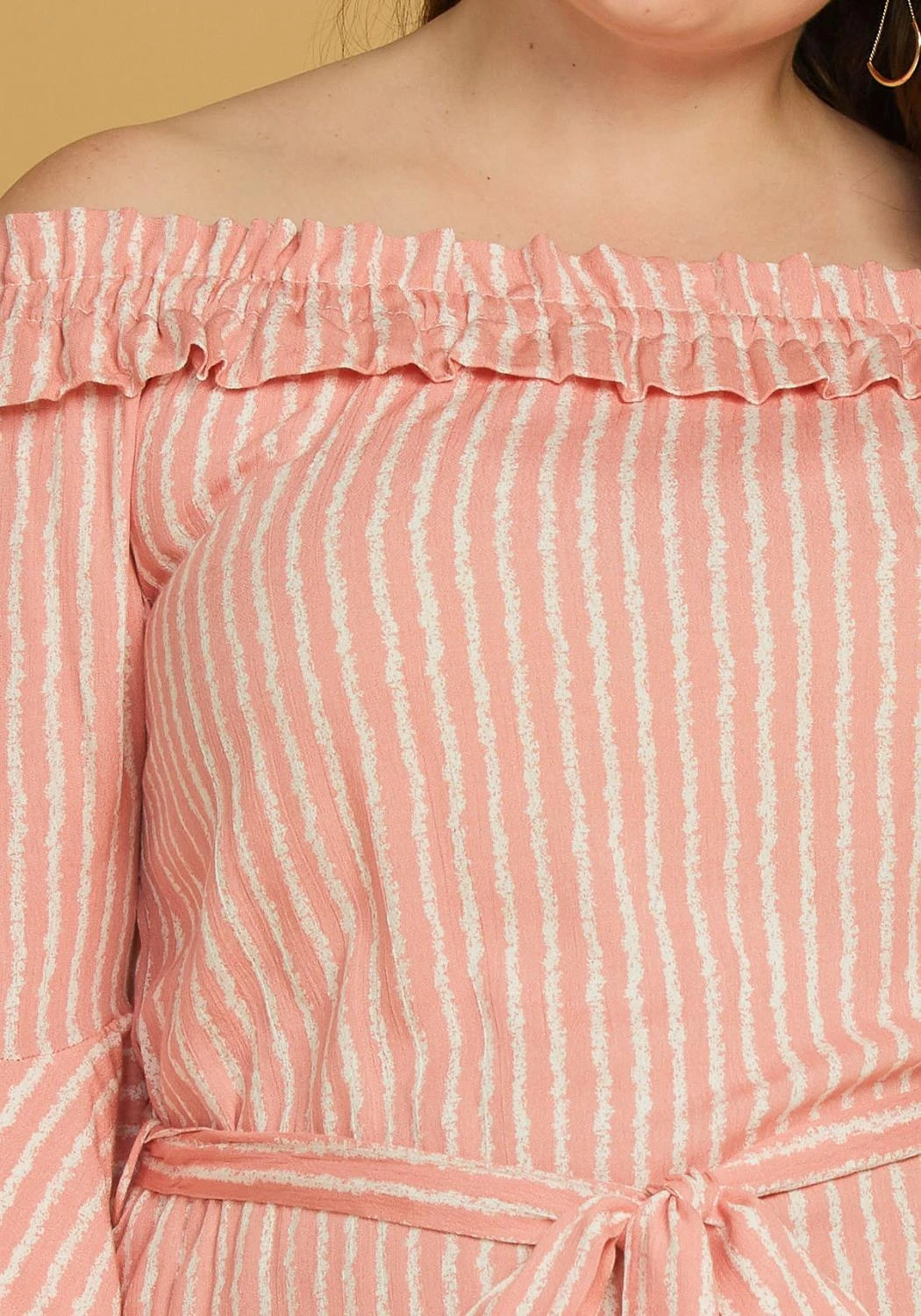 – elasticized ruffle neckline