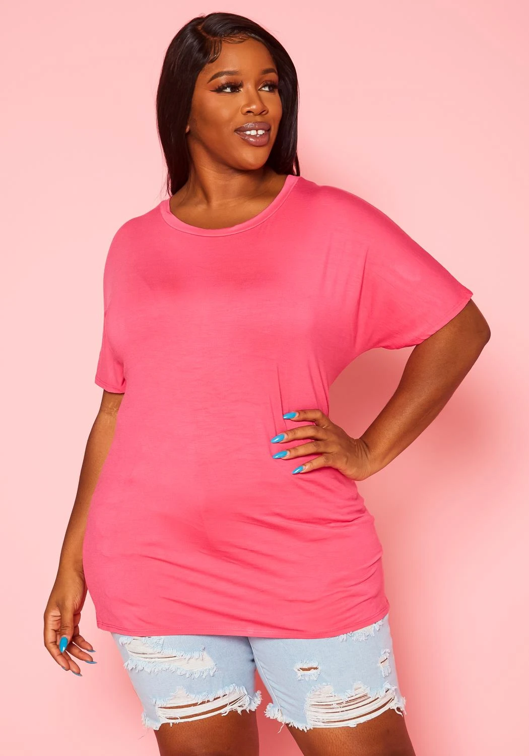 Casual plus size women’s t-shirt , round-neck style and short sleeves.