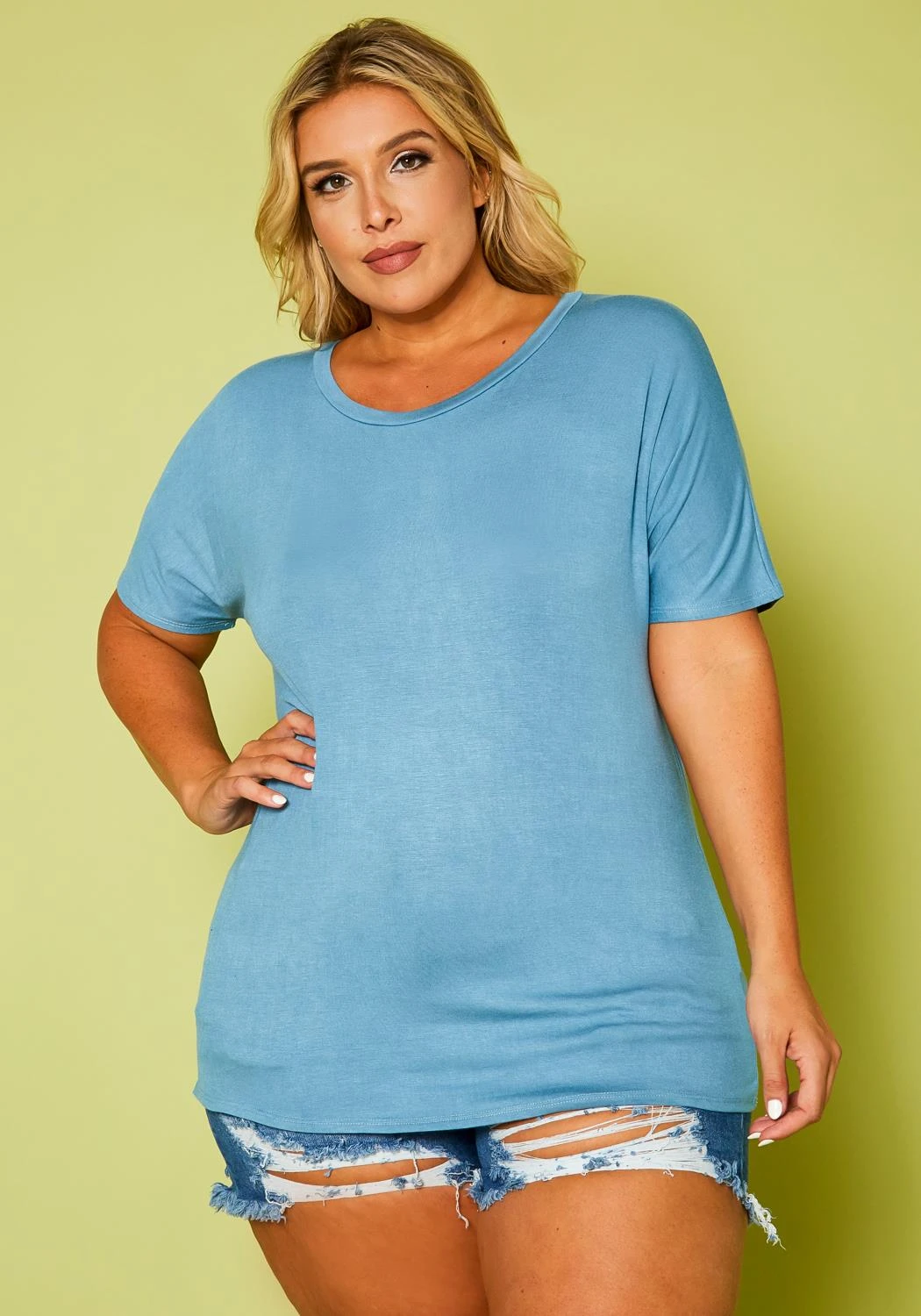 Casual plus size women’s t-shirt , round-neck style and short sleeves.