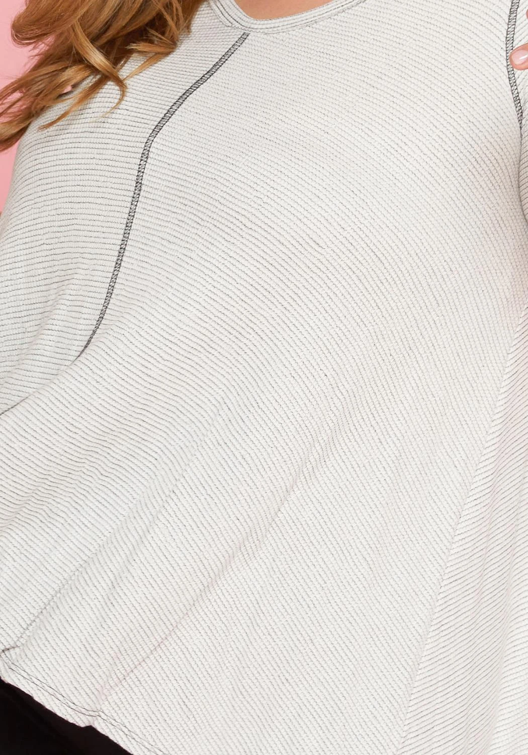 Casual plus size top with contrast stitching along the mid-line and sleeves. Pair it with your favorite pair of jeans for a casual and comfortable look.