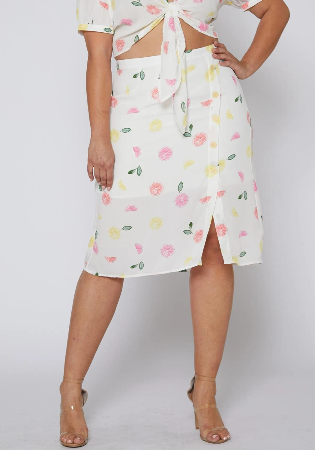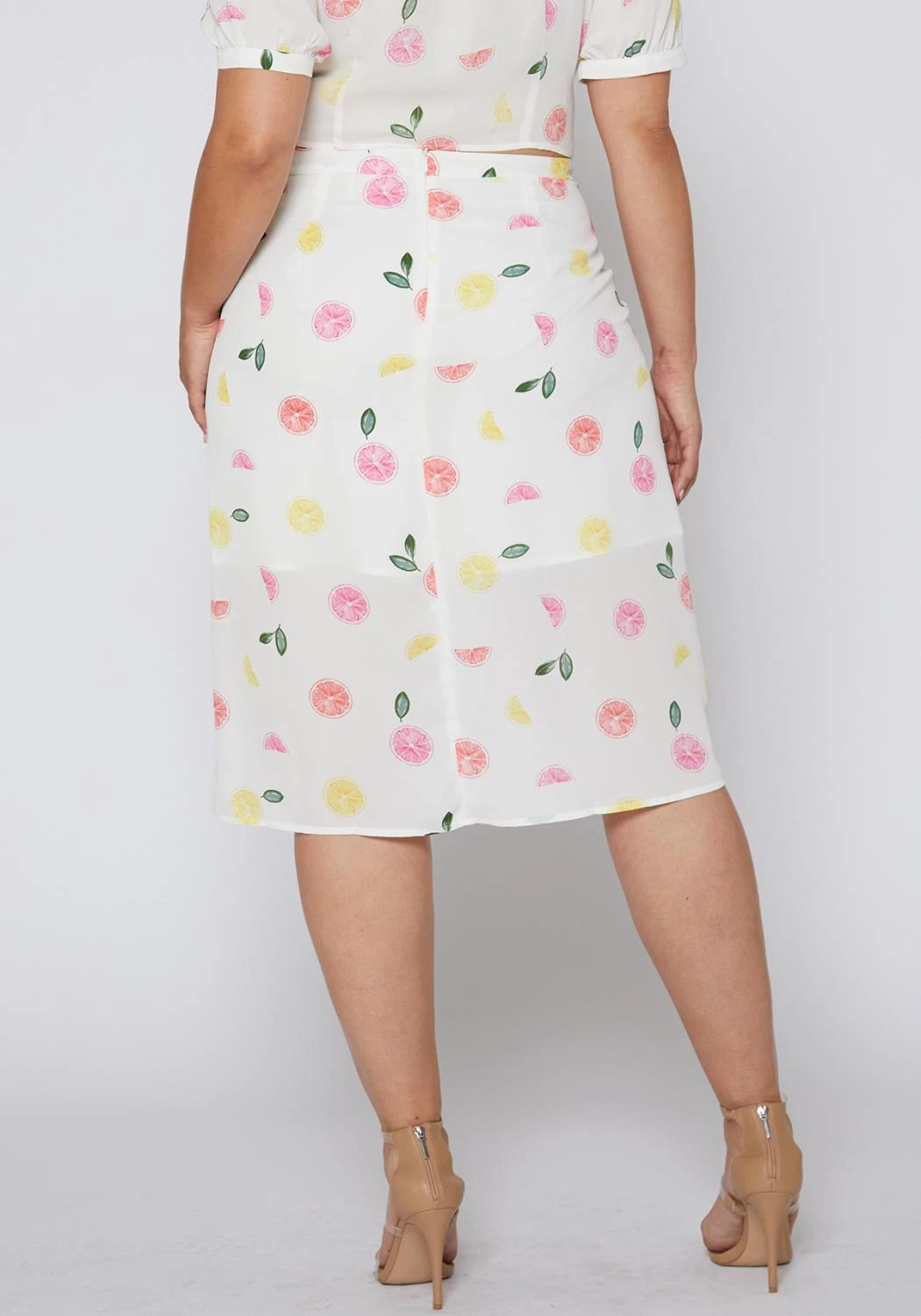 Nurode Plus Size Citrus Print Midi Skirt
