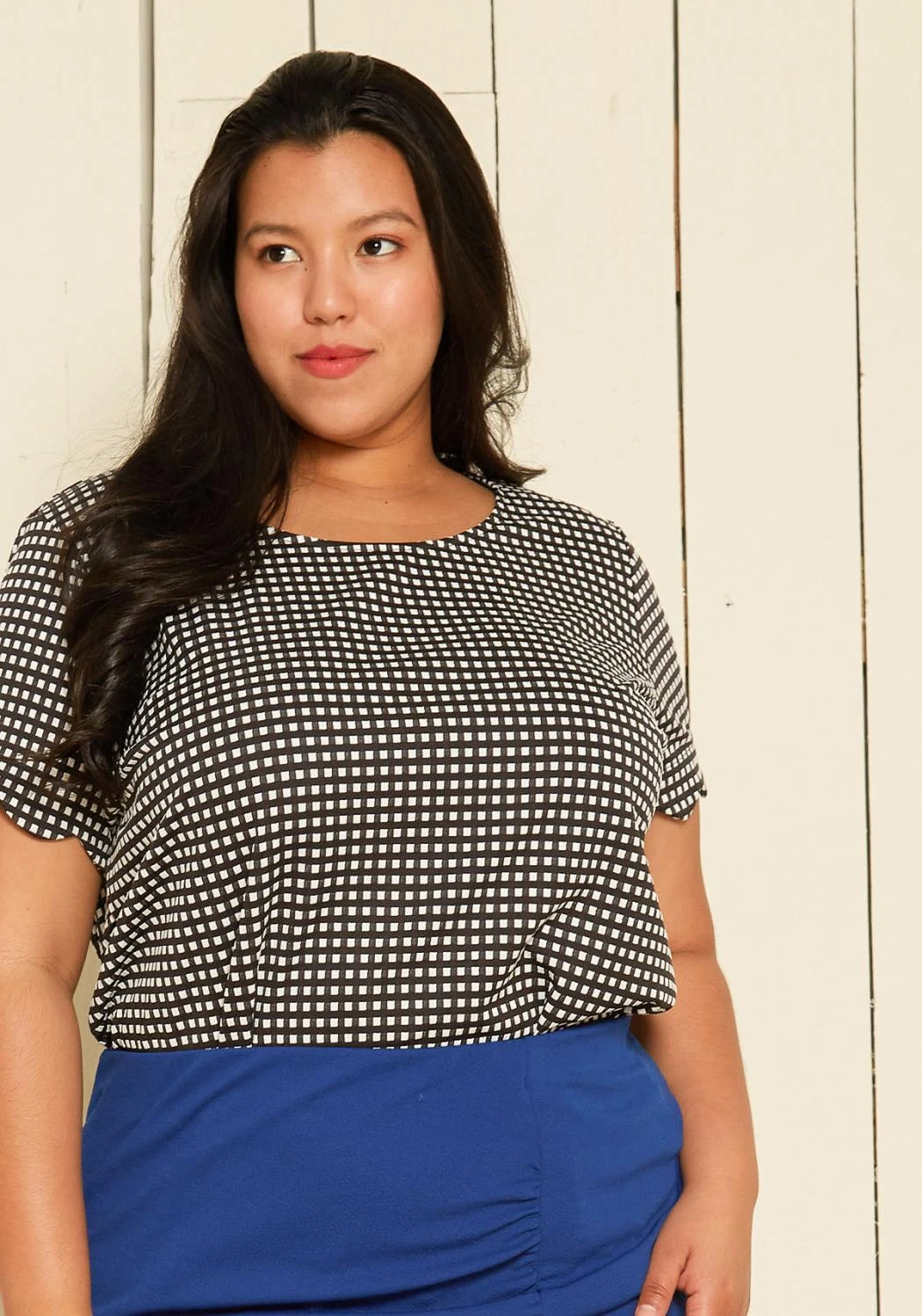 A simple, chic, and sophisticated blouse detailed with short sleeves, round neck cut, and tunic shape cut for comfort.