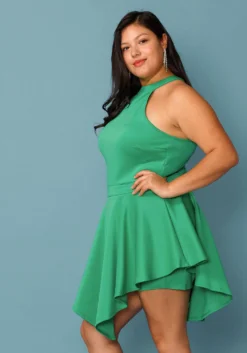 Effortless midi dress plus size women in hooded design, curved hem, fitted long sleeves, pocket hem and round neck style.