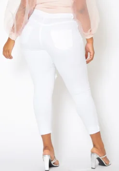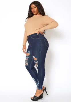 Summer fav biker denim shorts for plus size women which feature a high waist style, distressed front/back hem, belt loop holes and pockets.