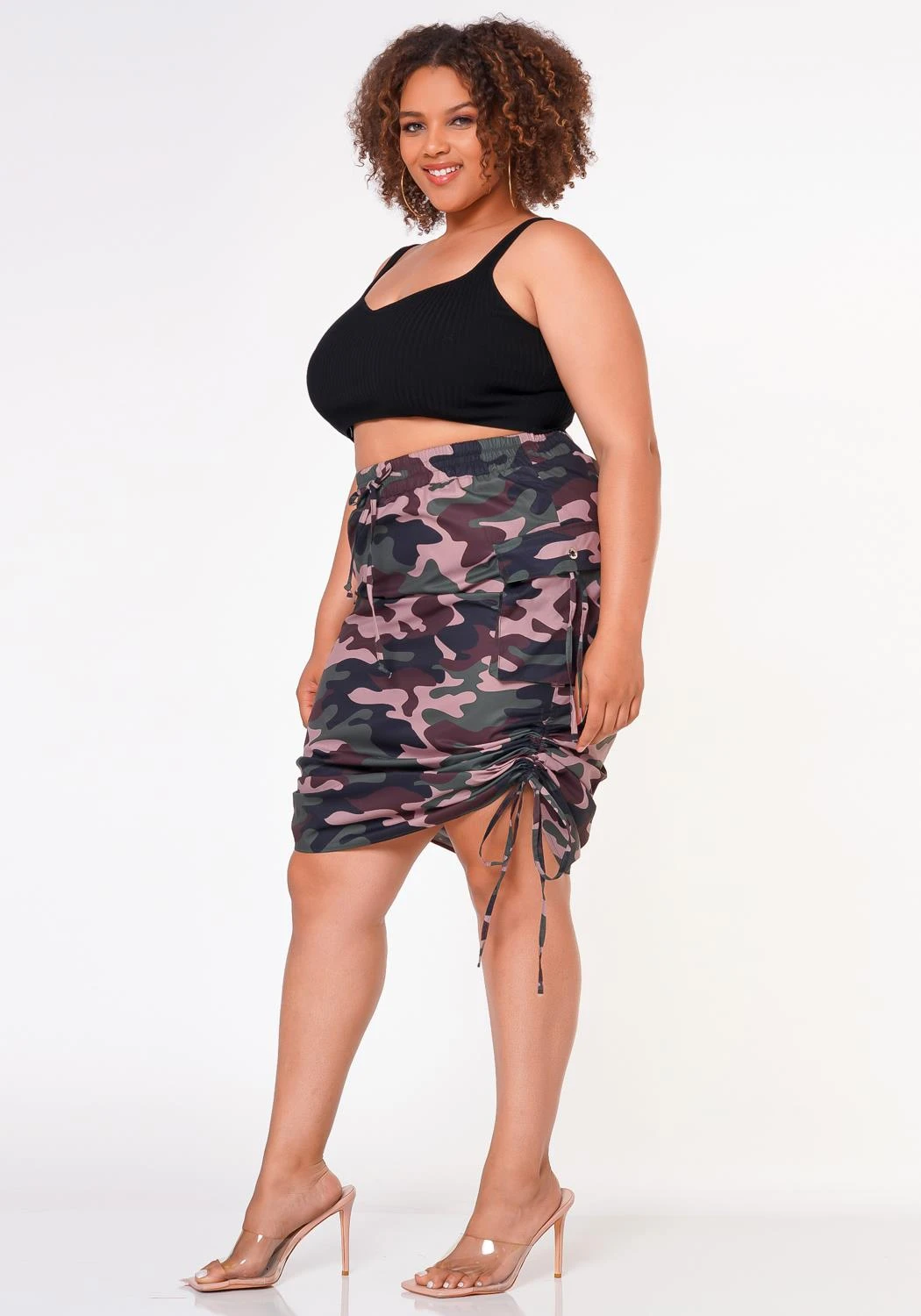Trendy plus size women’s adjustable drawstring side skirt, you can wear it as mini skirt to midi skirt.
