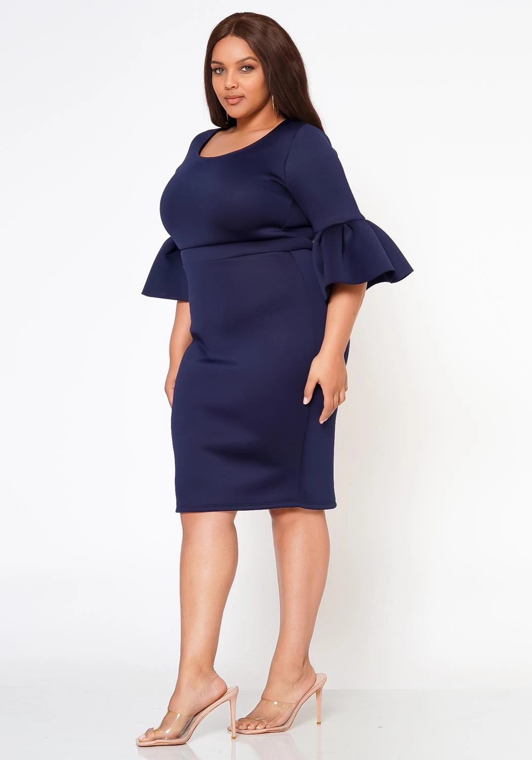 Be confident in our statement bodycon dress made with high-quality scuba fabric. This dress is designed to accentuate your figure while the flared long sleeves add a touch of elegance to your look. Not to mention, the dress has a back zipper closure for easy and proper fitting. Compliment this look with heels for the elegant outcome!