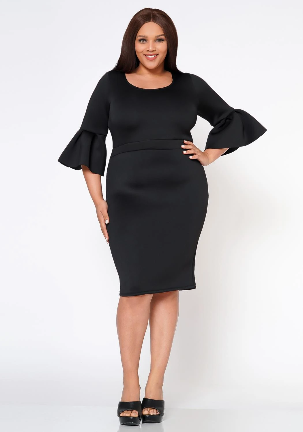 Be confident in our statement bodycon dress made with high-quality scuba fabric. This dress is designed to accentuate your figure while the flared long sleeves add a touch of elegance to your look. Not to mention, the dress has a back zipper closure for easy and proper fitting. Compliment this look with heels for the elegant outcome!