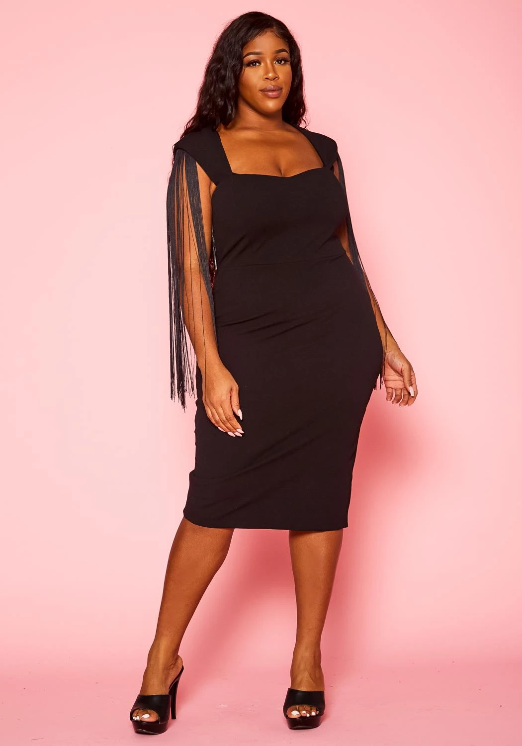 Plus Size Fringe Sleeve Midi Dress