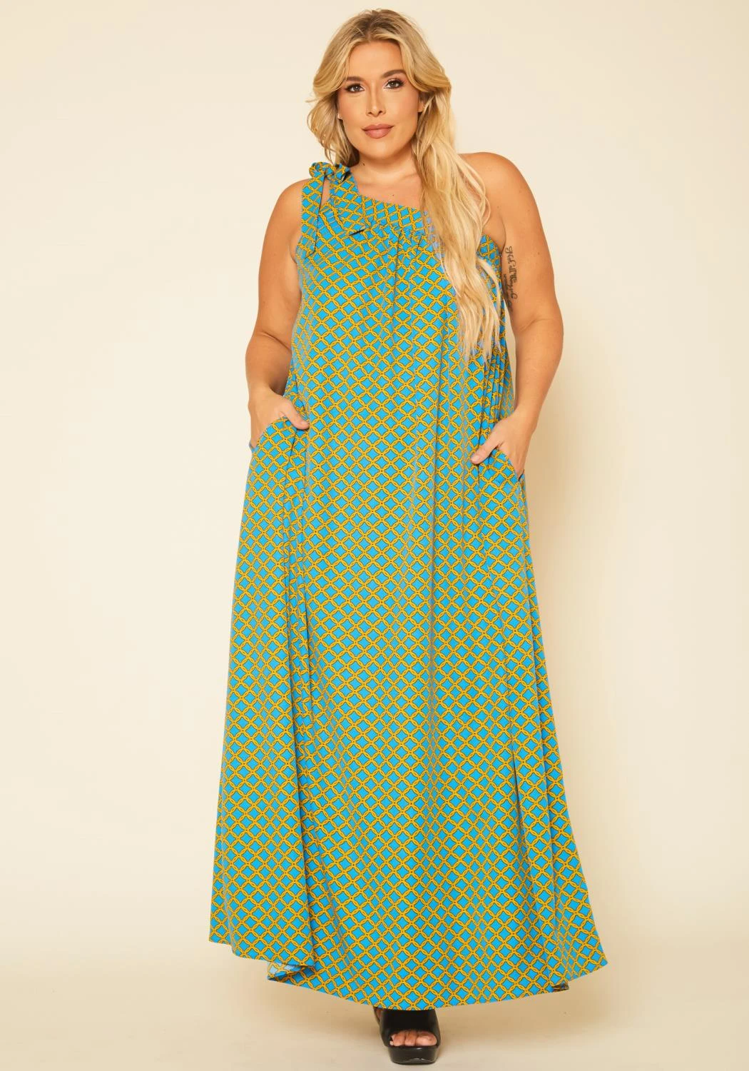 Plus Size One Shoulder Greek Maxi Dress