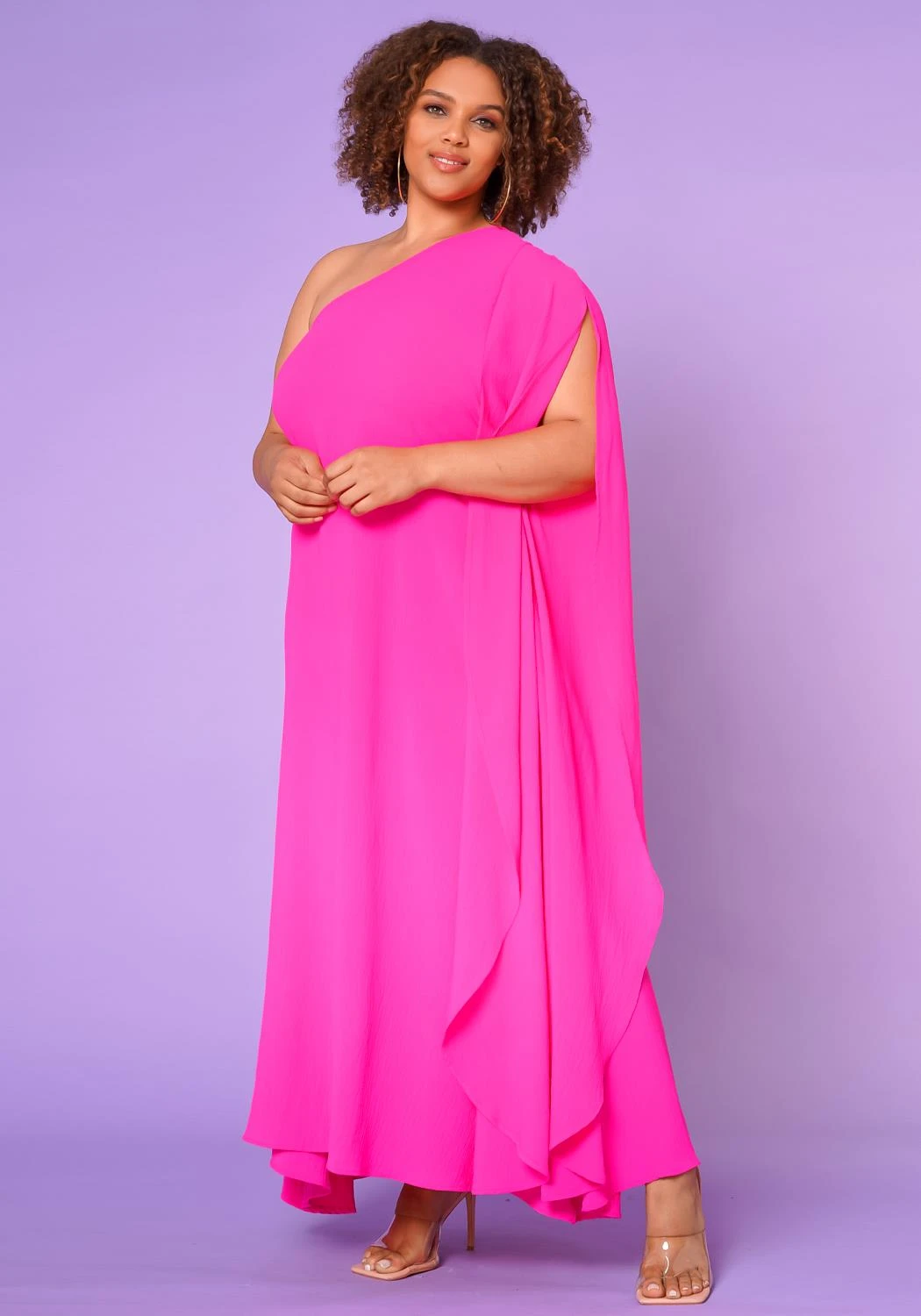 Effortless maxi dress in casual one shoulder design and a v-open cut flare detail for an extra ascent.
