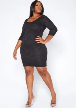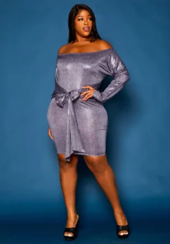 Plus size women’s dress in midi style, featuring a two tone pattern, lace up closure, tank sleeves, front slit detail, ribbed and round neck hem.