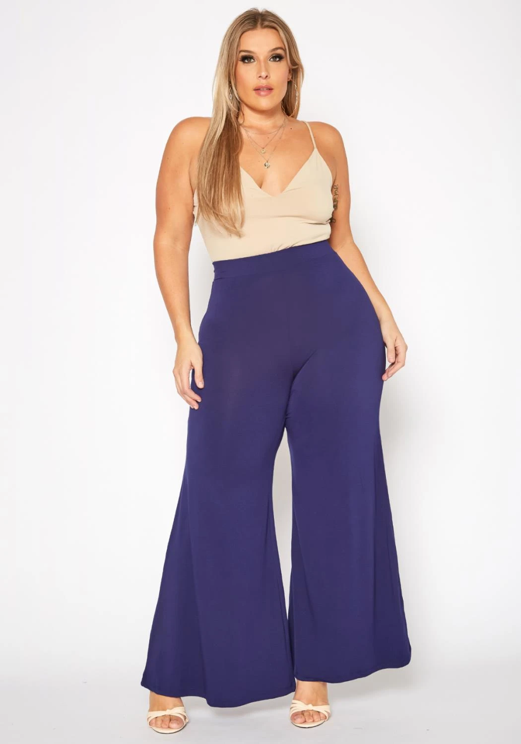 Must have plus size women’s pants in high waist style, flare leg hem and relaxed fitting.
