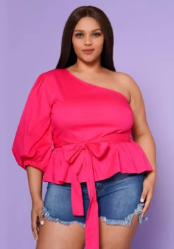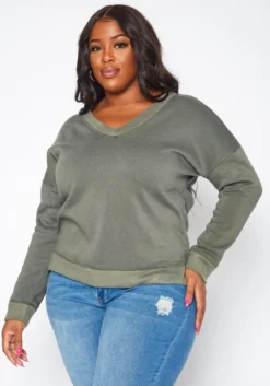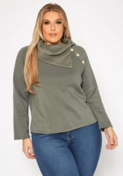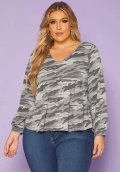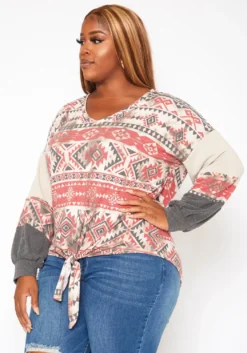 Pleione Wrap Front Long Sleeve Plus Size Women Clothing Blouse