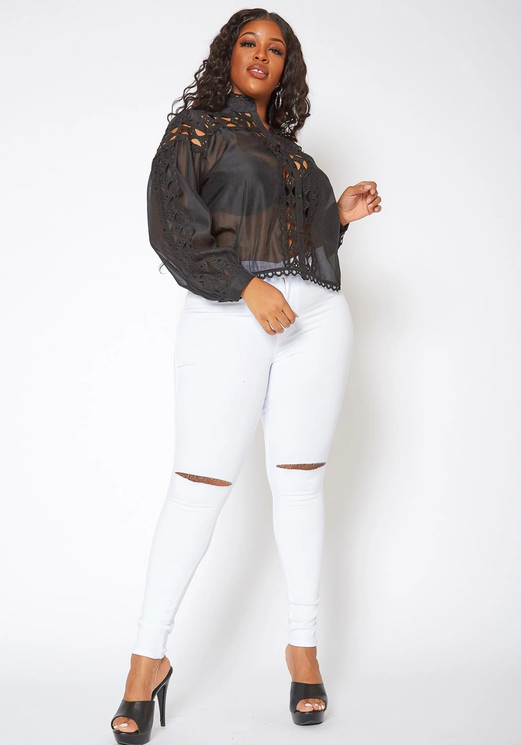Vibrant Plus Size Classic Knee Rip Skinny Jeans