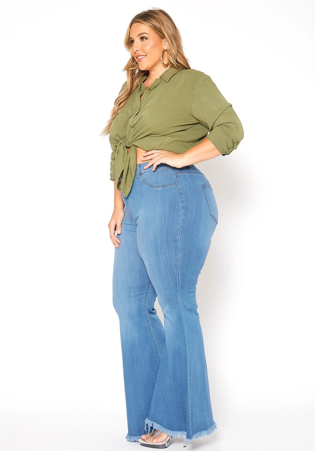Vibrant Plus Size Classic Wash High Waist Bell Bottom Jeans