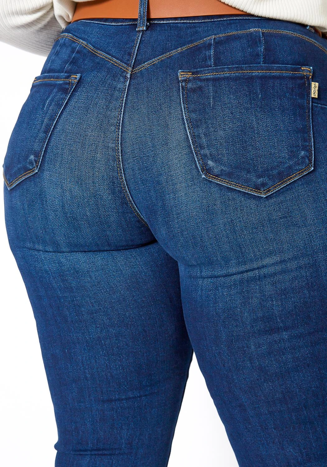 Asoph x Vibrant plus size women’s everyday skinny jeans which feature a colombian bum design, belt loop holes and pockets.
