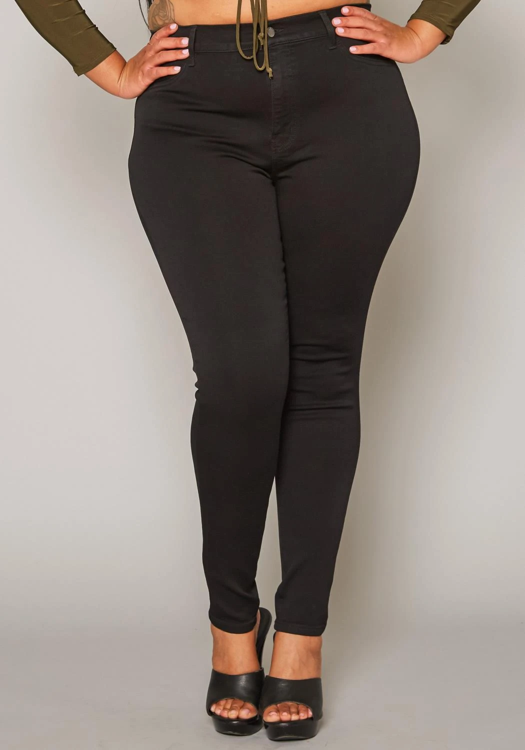 Asoph x Vibrant plus size women’s basic everyday skinny denim jeans in high waisted style plus includes belt loop holes and pockets.