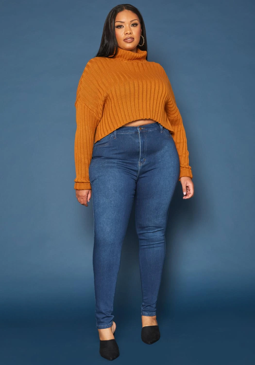 Asoph x Vibrant plus size women’s basic everyday skinny denim jeans in high waisted style plus includes belt loop holes and pockets.