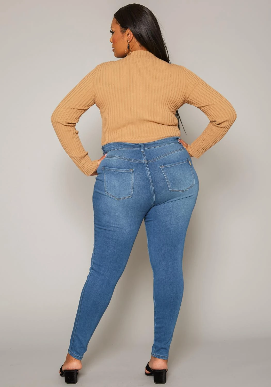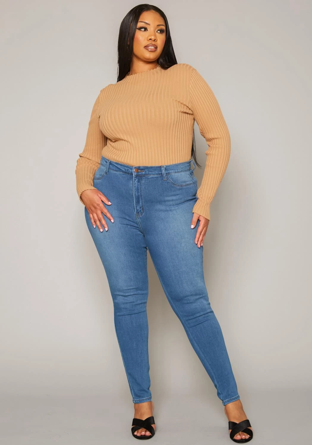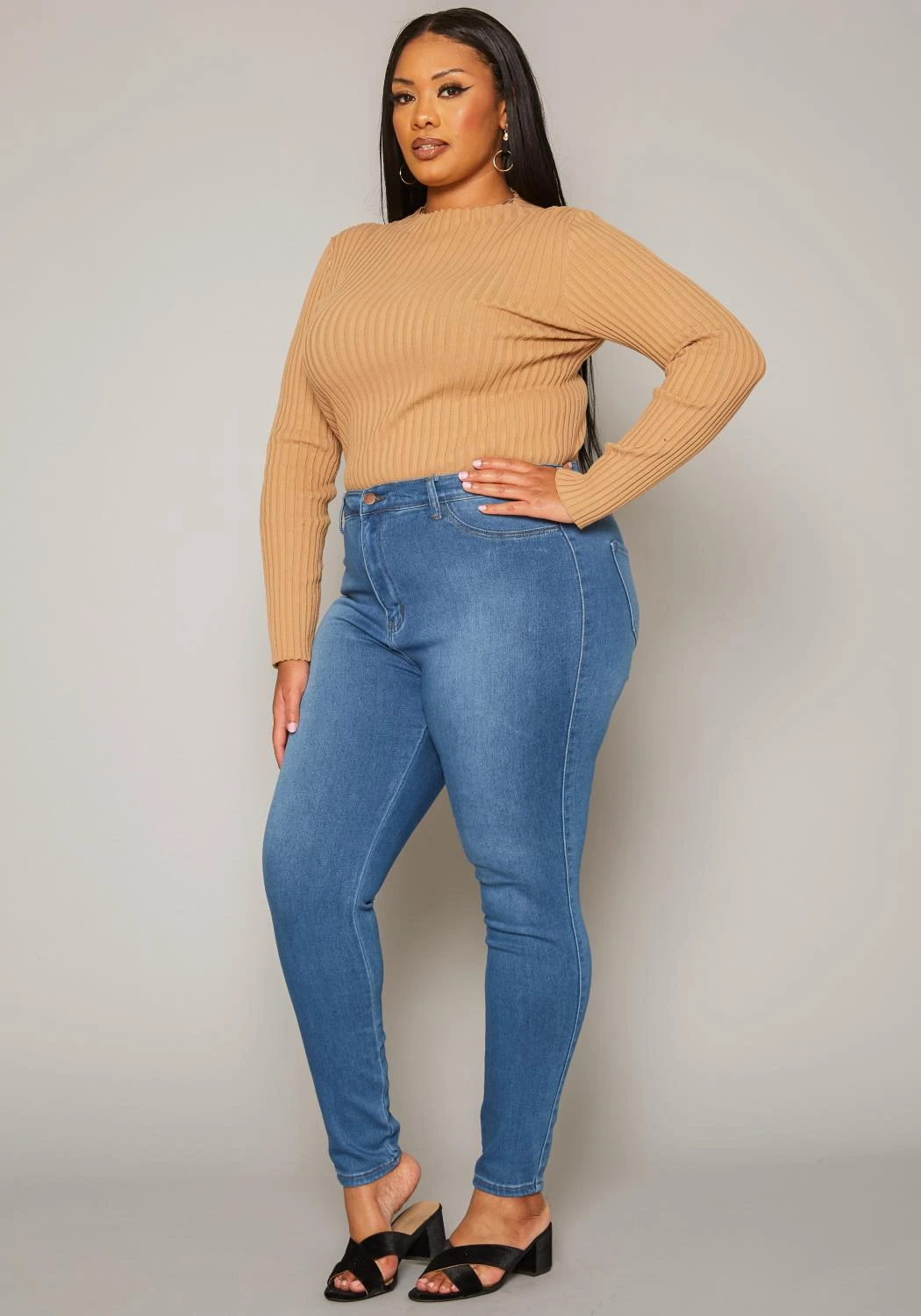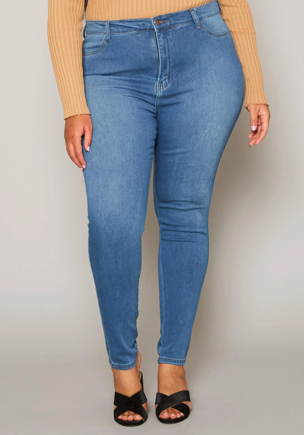 Asoph x Vibrant plus size women’s basic everyday skinny denim jeans in high waisted style plus includes belt loop holes and pockets.